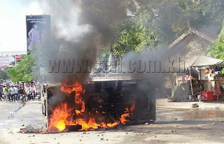 អគ្គិភ័យដ៏សន្ធោរសន្ធៅ បណ្តាលមកពីការឆេះរថយន្តនោះ ក្រុមបាតុករ