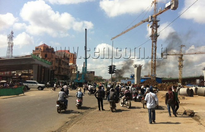 នៅត្រង់ទីកន្លែងដែលក្រុមបាតុករលើកមុន បានដុតឡានប៉េអឹមចោល