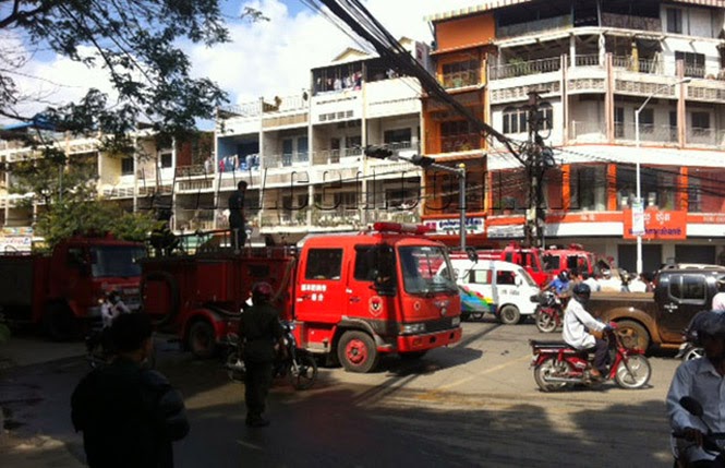 រត់ទៅប្រមូលផ្តុំគ្នា នៅលើស្ពានស្ទឹងមានជ័យ។ រថយន្តពន្លត់អគ្គិភ័យ